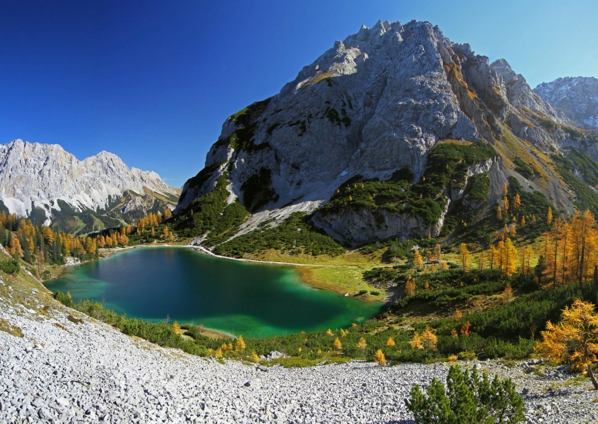 Zugspitze mit Seebensee / Tiroler Gebiet ( 2.962 Meter ), zugleich höchster Berg Deutschlands.
